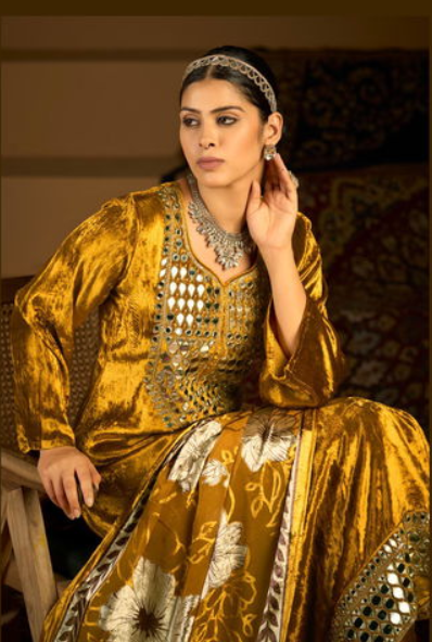 Fabric – Top :- Pure Viscose Velvet Mirror Handwork